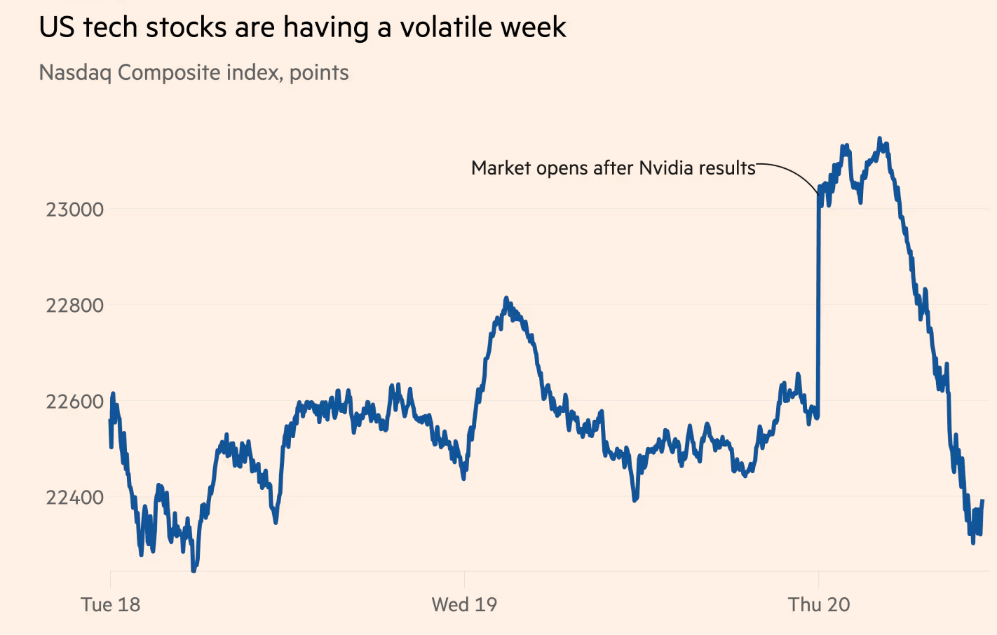 北京时间11月21日,据《金融时报》报道,当地时间周四,美国股市遭遇剧烈波动,科技股纷纷下挫。市场对英伟达亮眼业绩的乐观情绪,被AI公司高估值引发的新一轮担忧所抵消。