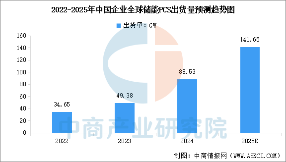 中商产业研究院发布的《2025-2030年中国储能变流器(PCS)产业深度研究及发展前景投资预测分析报告》显示,2024年,中国企业全球储能变流器( PCS )出货量约为88.53GW,同比增长79%。中商产业研究院分析师预测,2025年中国企业全球储能变流器( PCS )出货量将达到141.65GW。