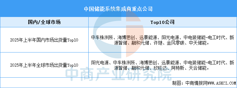 2025年上半年,国内市场中,储能系统出货量Top10的中国企业包括中车株洲所、海博思创、远景能源、阳光电源、中电装储能-电工时代、新源智储、融和元储、许继、金风零碳、中天储能。全球市场中,储能系统出货量Top10的中国企业包括阳光电源、中车株洲所、海博思创、远景能源、中电装储能-电工时代、新源智储、融和元储、欣旺达、阿特斯、天合储能。
