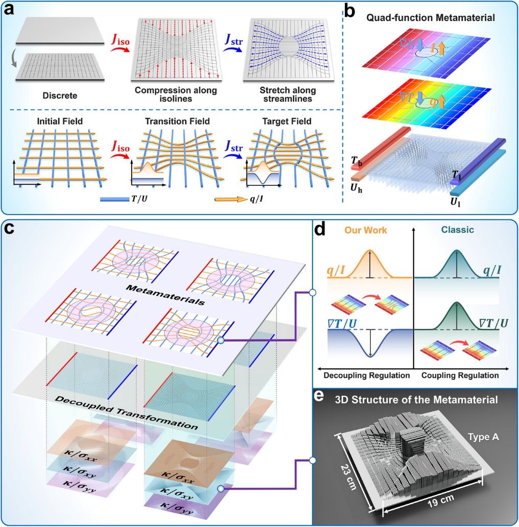 研究人员表示,该成果首次在单一结构中实现电压、电流、温度、热流四场独立可编程操控,打破“材料属性决定场调控能力”的传统认知,未来可进一步拓展至声波、弹性波等其他扩散场与波动场调控,为跨尺度、多物理场智能器件提供通用设计框架。