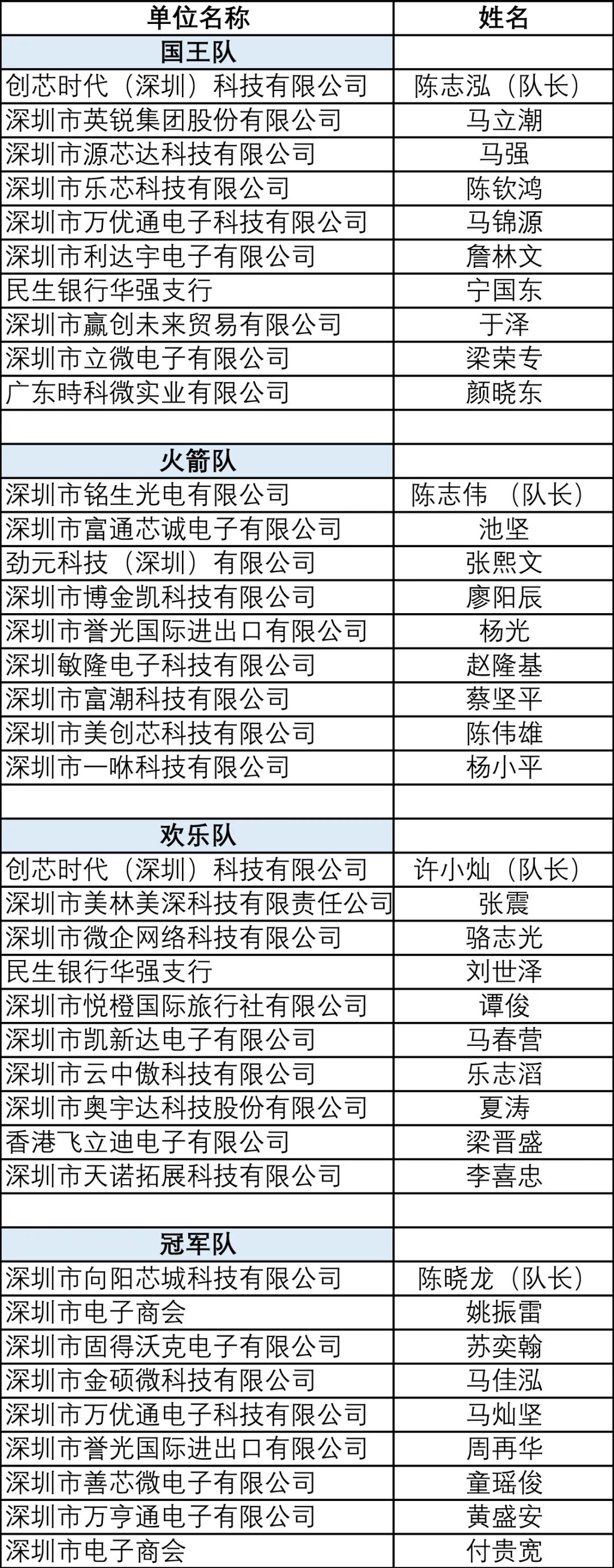 季军冠军队