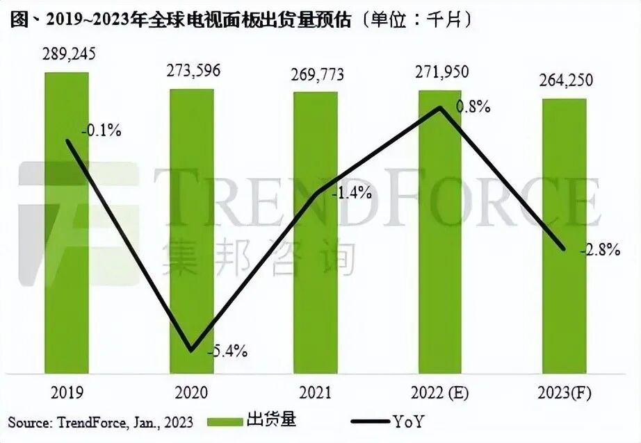 而近日,TrendForce发布报告称,预计到2023年时,中国厂商将拿下全球70.4%的LCD 电视面板市占率。