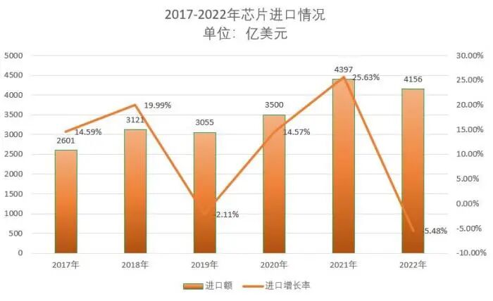 但是进口金额却高达4156亿美元,同比仅减少5%左右,进口芯片的平均单价提高了。