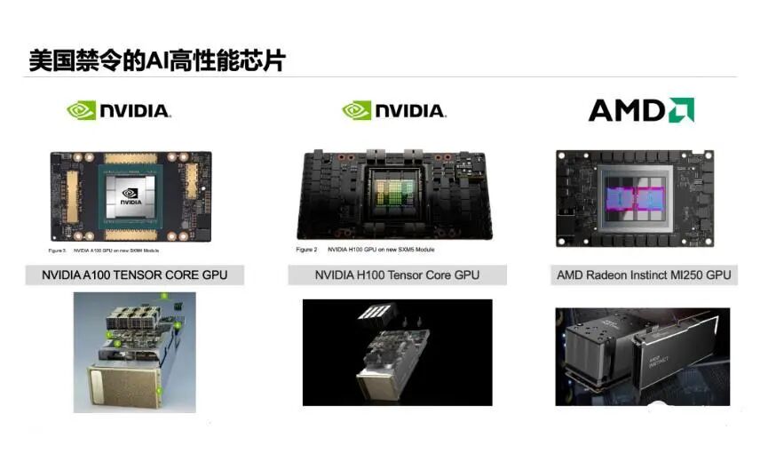 众所周知,担心中国在AI上面领先美国,所以美国将最顶级的GPU加速卡禁售了,比如Nvidia的A100、H100,还有AMD的Mi250。
