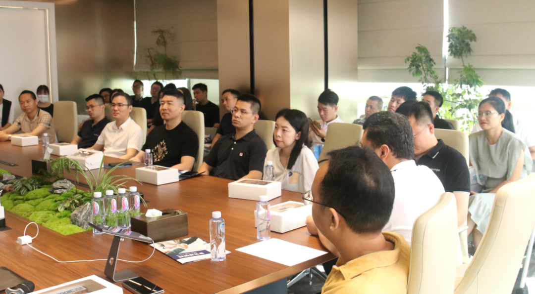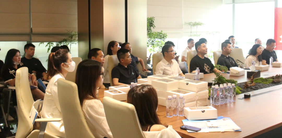 电子商会副秘书长朱宏凯感谢范总热情周到的接待安排,并表示走进优秀企业是商会品牌活动,持续为广大会员提供对标行业翘楚、学习交流的平台机制,促进资源对接。向与会企业家介绍了商会服务模式、会员走访、融媒体宣传等服务板块。