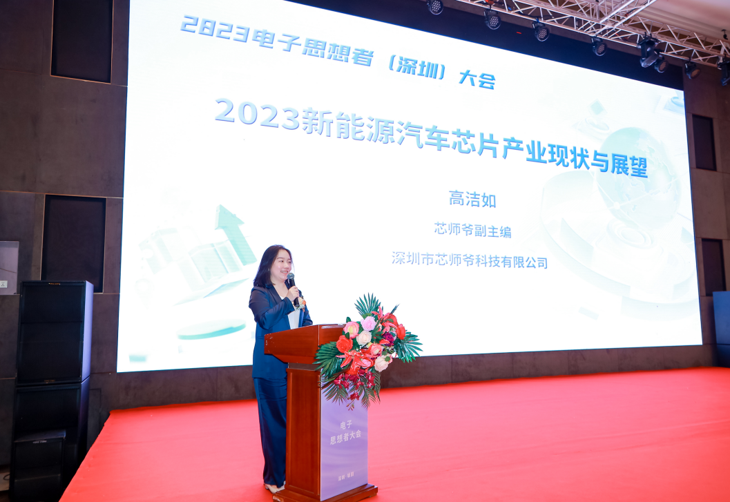 大会上,深圳市芯师爷科技有限公司副主编高洁如女士分享了中国汽车芯片产业发展的现状与趋势,我国新能源汽车快速发展,为新能源、智能网联芯片带来增量需求。