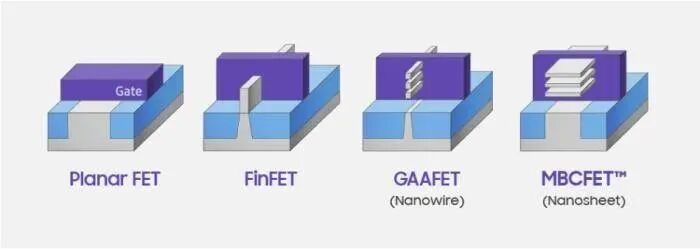 这次第二代工艺又有重大突破,这是不再是原先的GAA晶体管技术了,而是采用了更为先进的MBCFET晶体管技术(也属于GAA"Gate-all-around"环绕栅极的一种),在第一代的GAA上又进一步优化了。