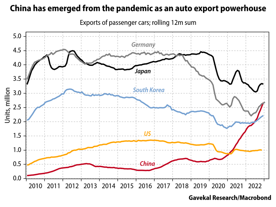 2022年,出口量达311.1万辆,超越德国,成为全球第二大汽车出口国。