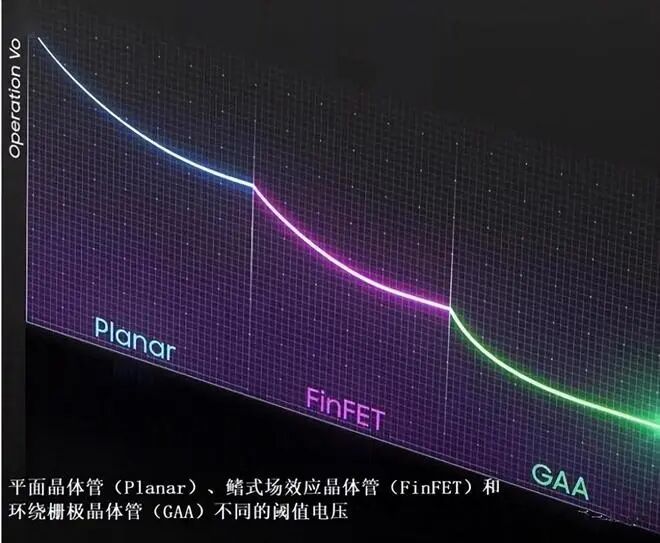 而GAA技术,相比于之前的FinFET技术,加到晶体管上的阈值电压变小,这样导致漏电功率也变小,从而芯片的功耗会得到较好的控制,功耗降低,那么发热也会更佳。