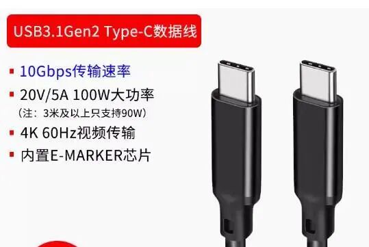 2、如果你没有视频传输需求,那么就不需要E-marker芯片,直接买普通的,支持USB3.2及以上规格(速度10Gbps以上)的双头USB-C线即可。