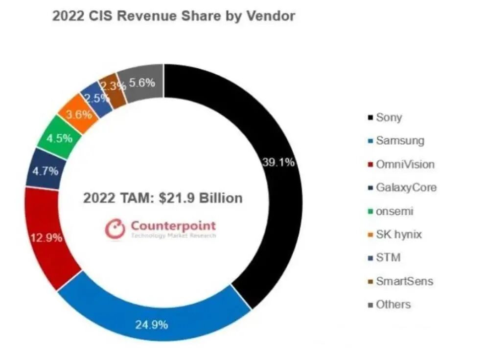 可见,CMOS芯片市场,国产的份额真的不高,还不到20%,主要是被索尼、三星等日韩厂商占领,国产手机厂商们,对索尼、三星依赖很大。