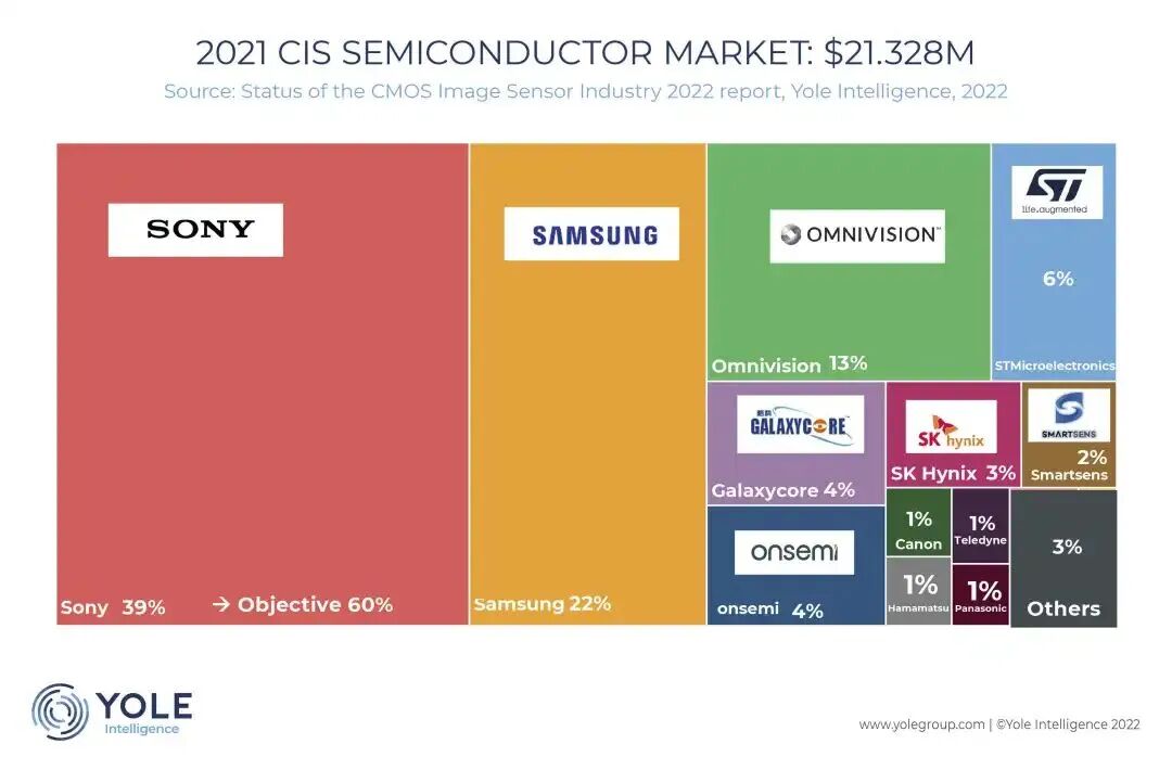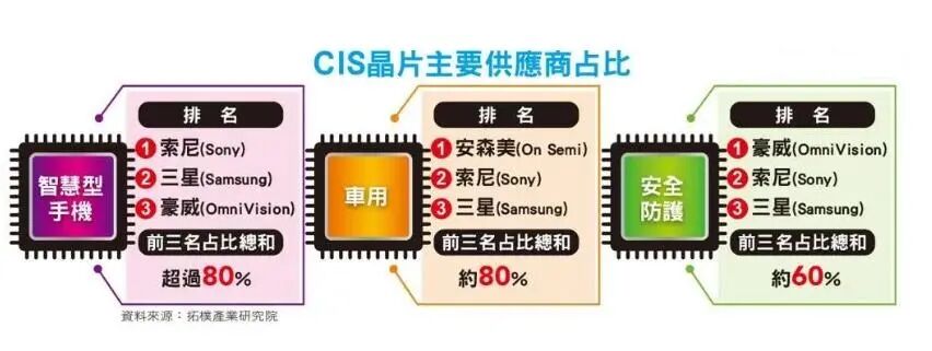 另外还有格科微电子(GalaxyCore)排第五名,以及思特威科技(SmartSens)排第六名,三大中国厂商份额达到20%左右。