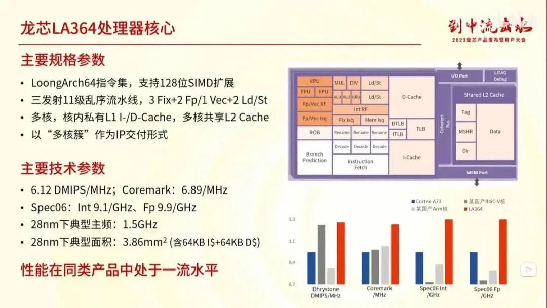 这三款CPU核中LA132性能较低,但LA264大致是ARM A55的水平,LA364大致是ARM A76的水平。
