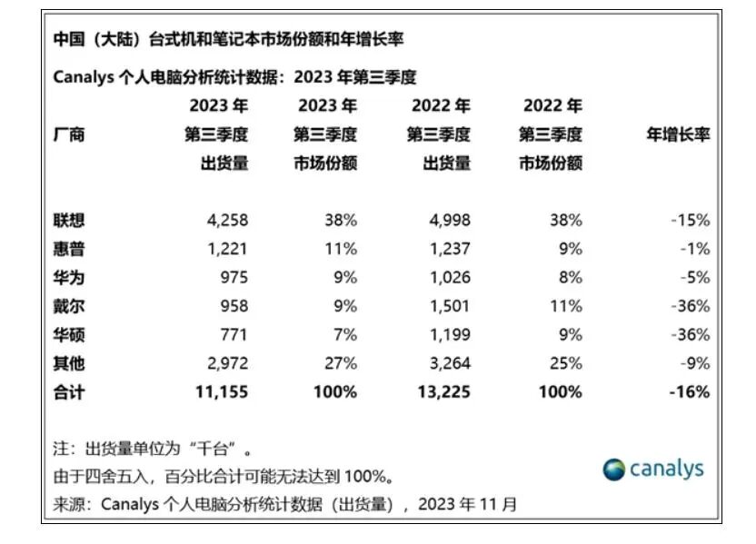 于是今年一季度,戴尔在中国的销量大跌45.1%,但这还只是开始,二季度戴尔销量再大跌52%,三季度戴尔再大跌36%,目前的份额只有9%左右,已经排第四名了。