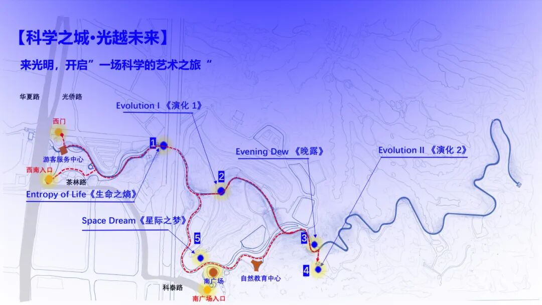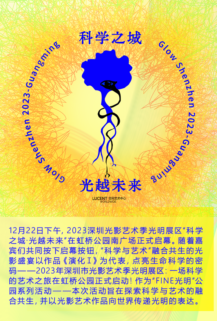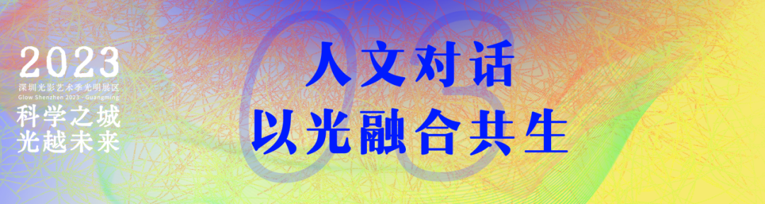 在光明展区,LUCENT空间艺术中心,深度探讨以首创的“3+5+9=5”的“破圈”创新模式实现突破,打破光影艺术的局限,真正实现科学与艺术的“共生”逻辑,邀请艺术家们和科研专家通过现场踏勘、调研、开展工作坊、走访头部科研企业,对科学与艺术的共生方式展开深度的交流与探索,在光明区以虹桥公园为起点,还将展开持续性的探索与创作,为光明区创作向未来的城市 IP,让光影艺术焕发可持续的生命力!