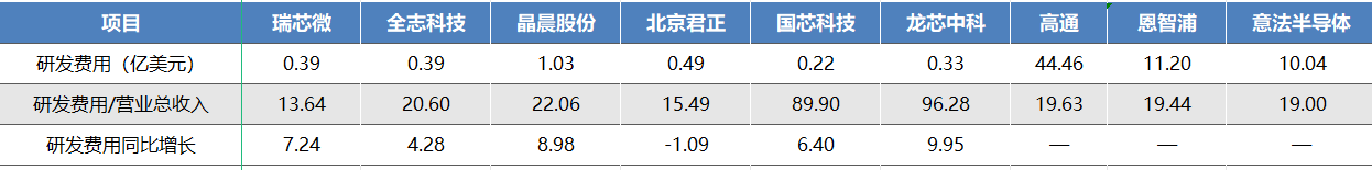 如果与国际厂商比较,在研发费用的金额上,国内嵌入式CPU明显要少很多:高通2025年上半年研发费用44.46亿美元,恩智浦11.20亿美元,意法半导体10.04亿美元。但就研发费用率进行比较,三家国际大厂基本在19%左右,而国内企业即使不考虑龙芯中科与国芯科技高比例投入研发的企业,其他厂商在研发费用率上也有不弱的表现。