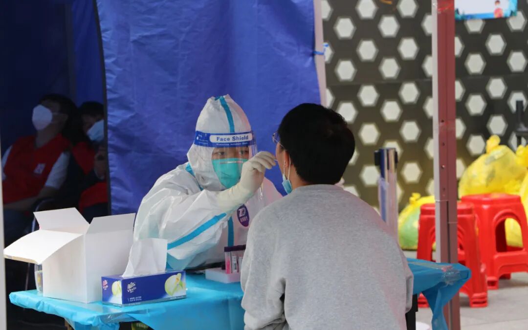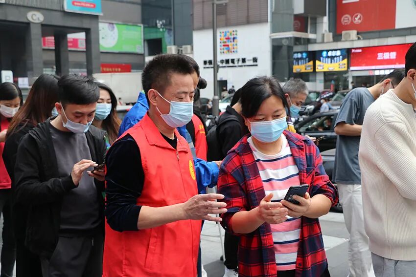 现场,大家分工协作,引导市民群众有序排队进行核酸检测,回答咨询,并协助老人幼童扫码注册等服务工作。